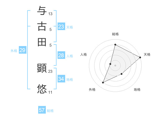 与古田 顕悠さんを姓名の画数から五運を鑑定