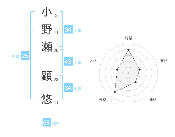 小野瀬 顕悠さんを姓名の画数から五運を鑑定