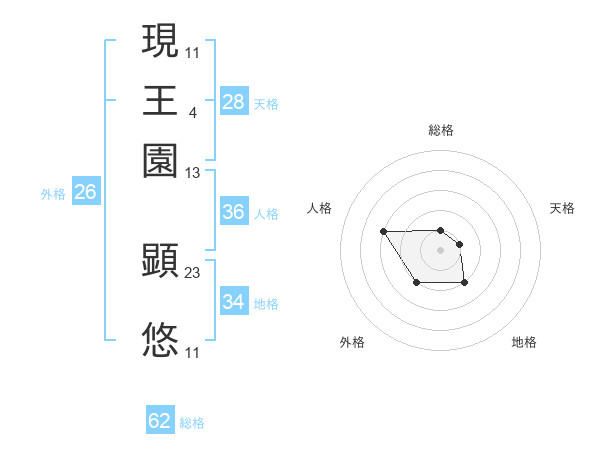 現王園 顕悠さんの総格は62画の1点!