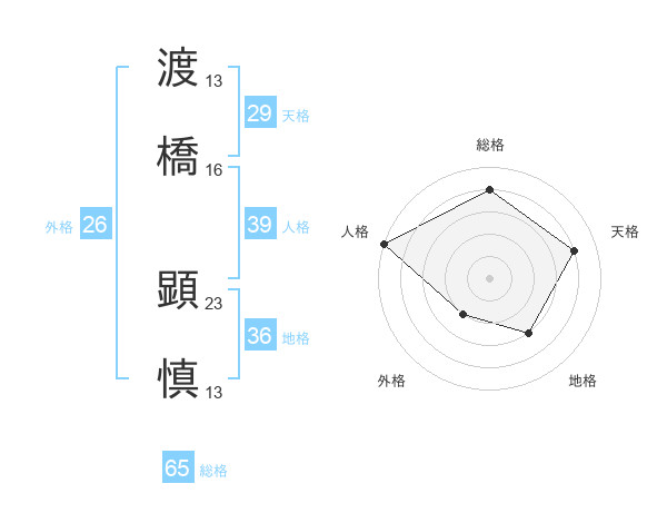 渡橋 顕慎さんの総格は65画の4点!