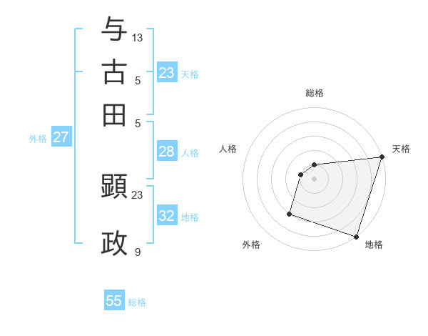与古田 顕政さんの天格は23画の5点!
