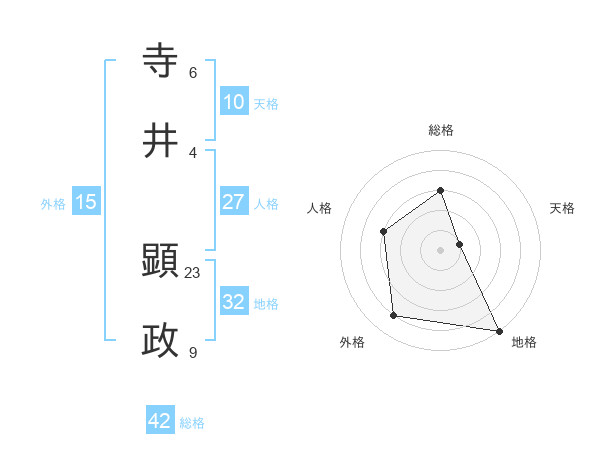 寺井 顕政さんを姓名の画数から五運を鑑定