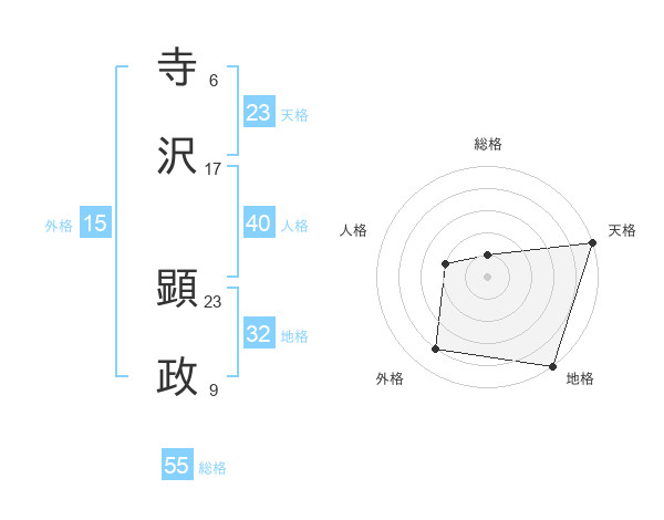 寺沢 顕政さんの天格は23画の5点!