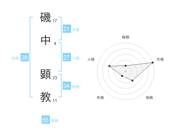 磯中 顕教さんを姓名の画数から五運を鑑定