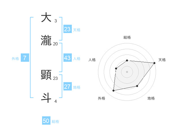 大瀧 顕斗さんを姓名の画数から五運を鑑定
