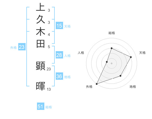 上久木田 顕暉さんを姓名の画数から五運を鑑定