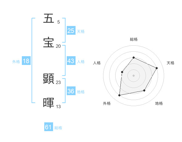 五宝 顕暉さんを姓名の画数から五運を鑑定