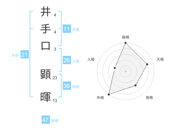 井手口 顕暉さんを姓名の画数から五運を鑑定