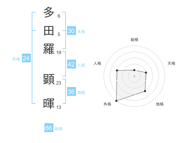 多田羅 顕暉さんを姓名の画数から五運を鑑定