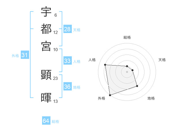 宇都宮 顕暉さんを姓名の画数から五運を鑑定
