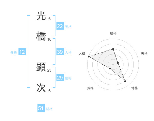 光橋 顕次さんを姓名の画数から五運を鑑定