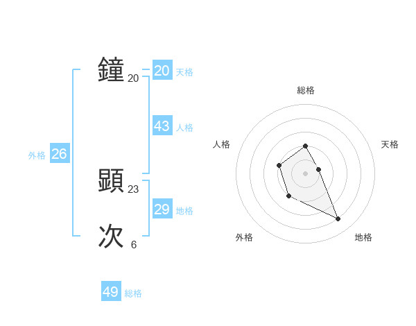 鐘 顕次さんを姓名の画数から五運を鑑定