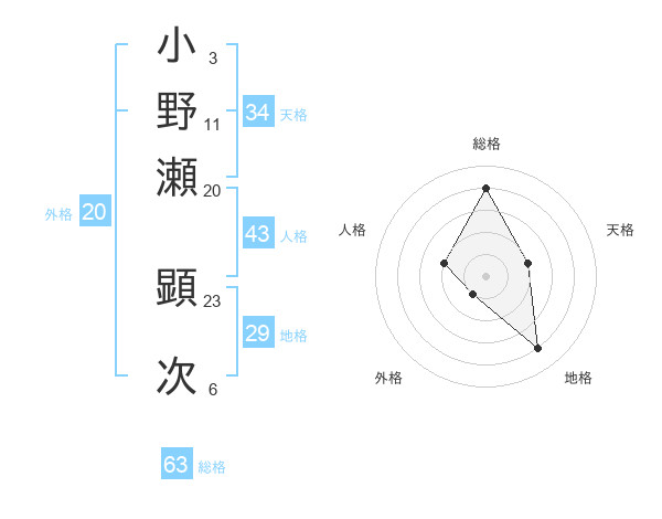 小野瀬 顕次さんを姓名の画数から五運を鑑定