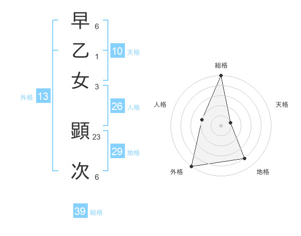 早乙女 顕次さんの外格は13画の5点!