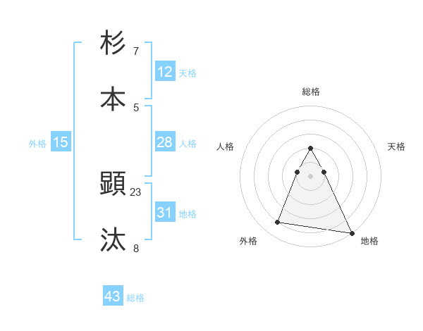 杉本 顕汰さんを姓名の画数から五運を鑑定