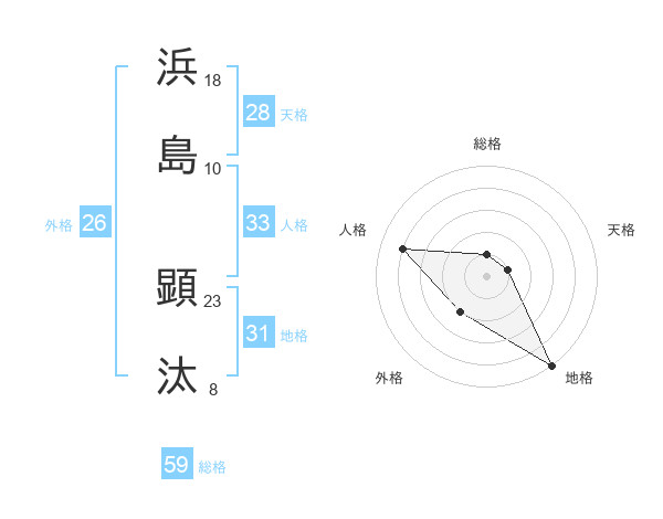浜島 顕汰さんを姓名の画数から五運を鑑定