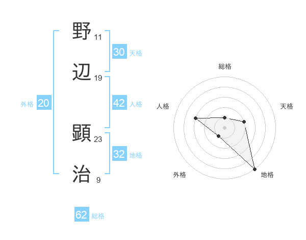 野辺 顕治さんの総格は62画の1点!