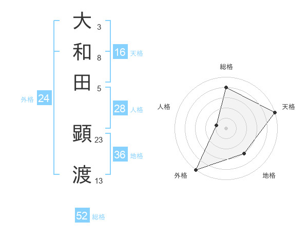 大和田 顕渡さんを姓名の画数から五運を鑑定