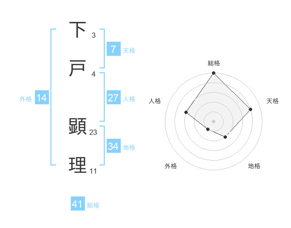 下戸 顕理さんを姓名の画数から五運を鑑定