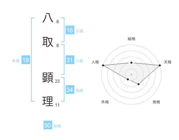 八取 顕理さんの天格は16画の5点!