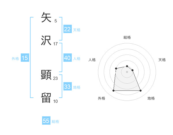 矢沢 顕留さんの総格は55画の1点!