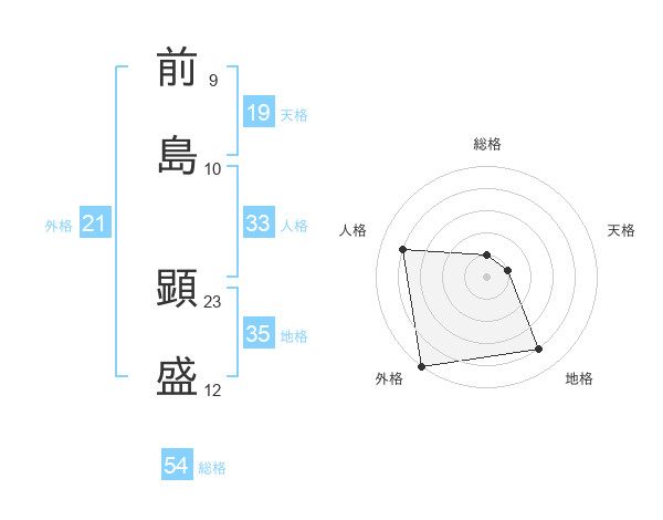 前島 顕盛さんを姓名の画数から五運を鑑定
