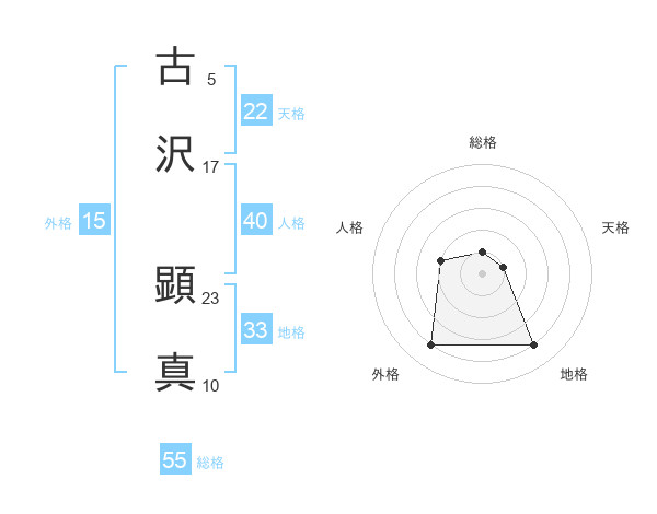 古沢 顕真さんを姓名の画数から五運を鑑定