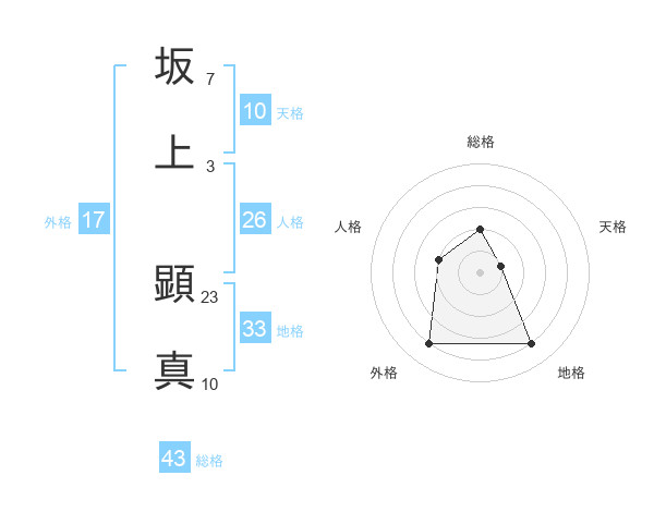 坂上 顕真さんの総格は43画の2点!