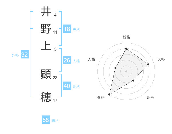 井野上 顕穂さんを姓名の画数から五運を鑑定