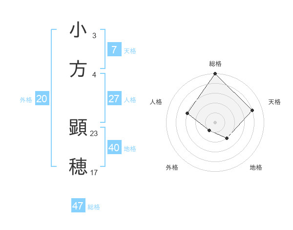 小方 顕穂さんを姓名の画数から五運を鑑定