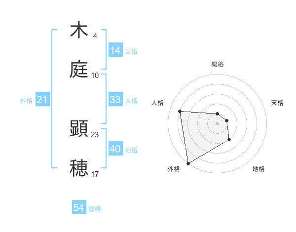 木庭 顕穂さんの外格は21画の5点!