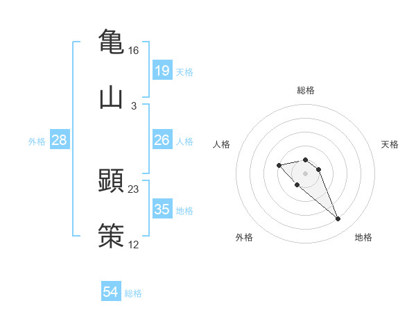 亀山 顕策さんを姓名の画数から五運を鑑定