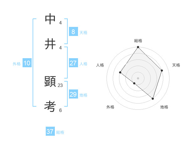 性格や才能などを表す2番目に重要な運勢です。人間関係や協調性、社会的な成功に影響します。主に20歳から50歳ぐらいまでの中年期の運勢を表します。