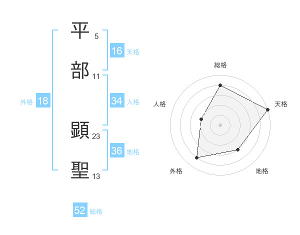 平部 顕聖さんの総格は52画の4点!