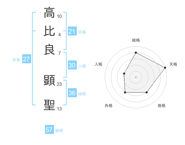 高比良 顕聖さんの総格は57画の4点!