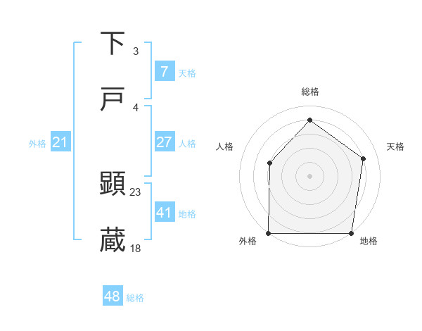 下戸 顕蔵さんを姓名の画数から五運を鑑定