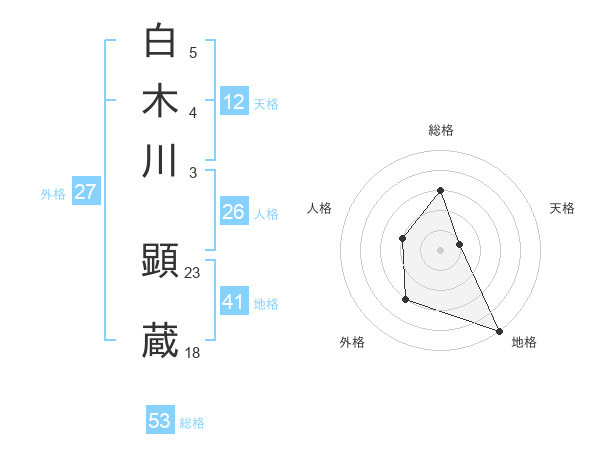 白木川 顕蔵さんの総格は53画の3点