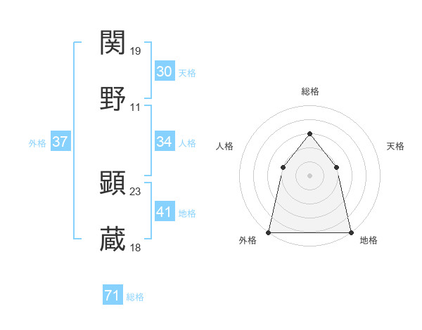 関野 顕蔵さんを姓名の画数から五運を鑑定