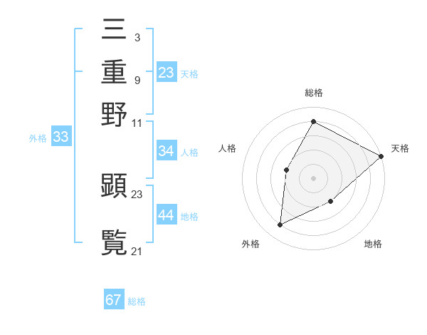 三重野 顕覧さんを姓名の画数から五運を鑑定