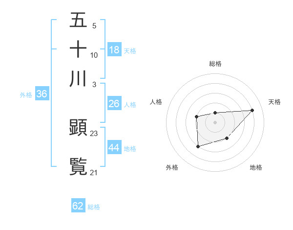 五十川 顕覧さんを姓名の画数から五運を鑑定