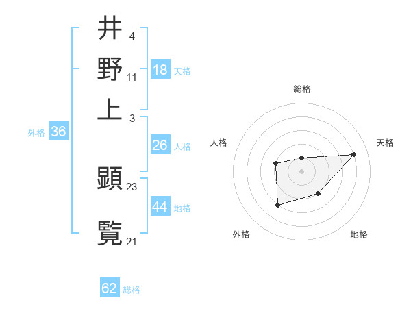 井野上 顕覧さんを姓名の画数から五運を鑑定