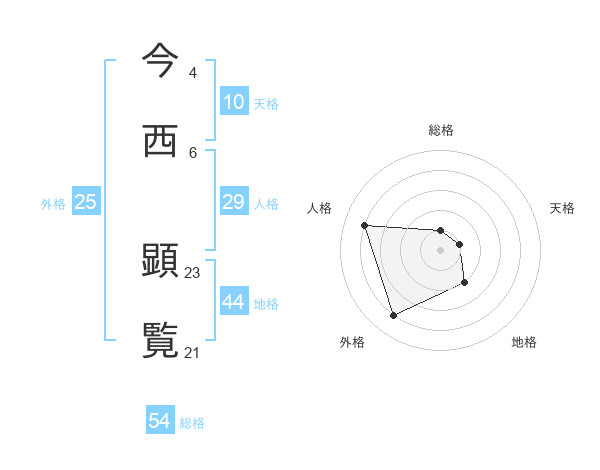 今西 顕覧さんの総格は54画の1点!