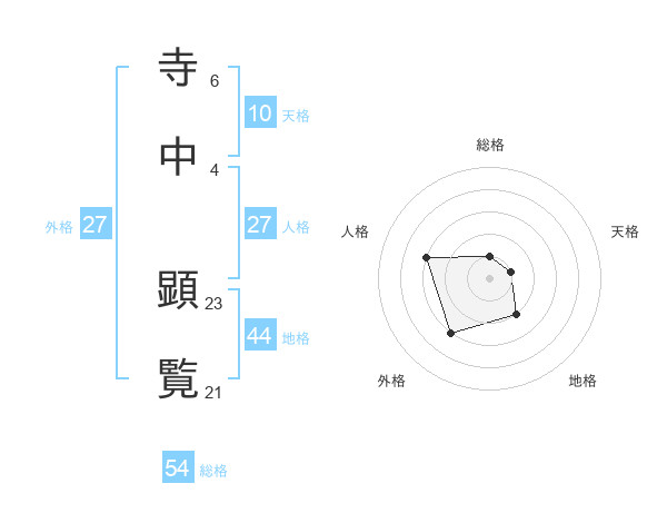 寺中 顕覧さんを姓名の画数から五運を鑑定