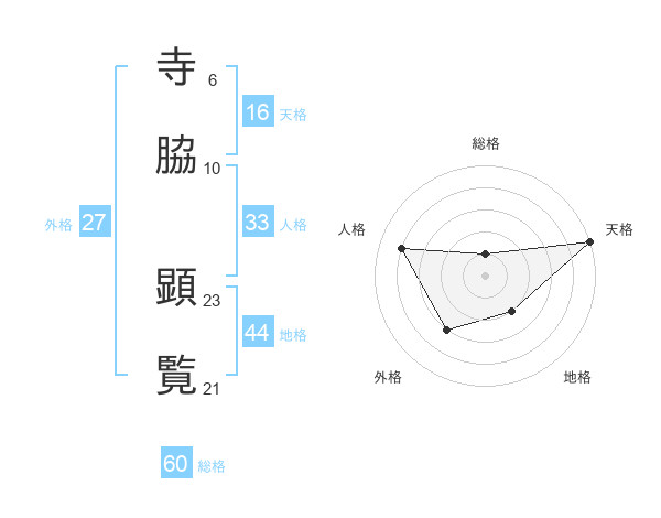 寺脇 顕覧さんを姓名の画数から五運を鑑定