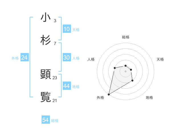 小杉 顕覧さんを姓名の画数から五運を鑑定