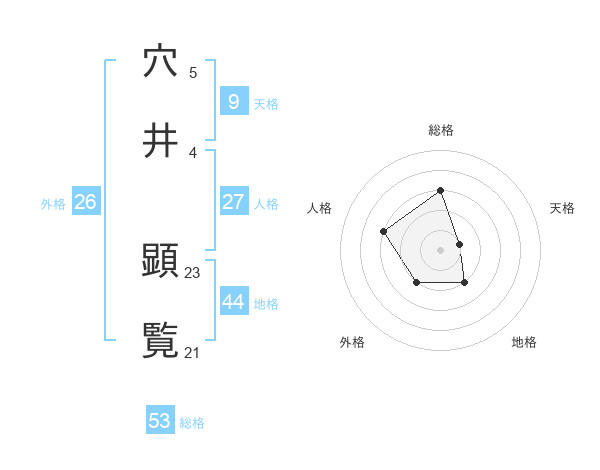 穴井 顕覧さんを姓名の画数から五運を鑑定