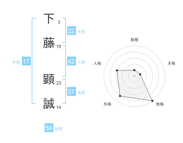 下藤 顕誠さんを姓名の画数から五運を鑑定