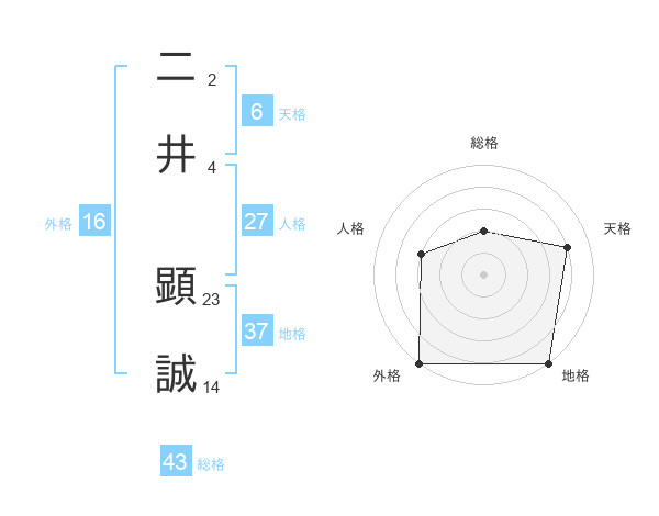 二井 顕誠さんを姓名の画数から五運を鑑定