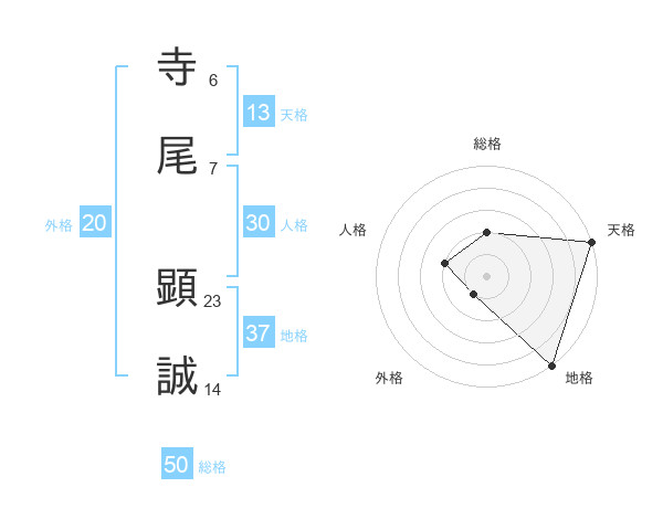 寺尾 顕誠さんの総格は50画の2点!