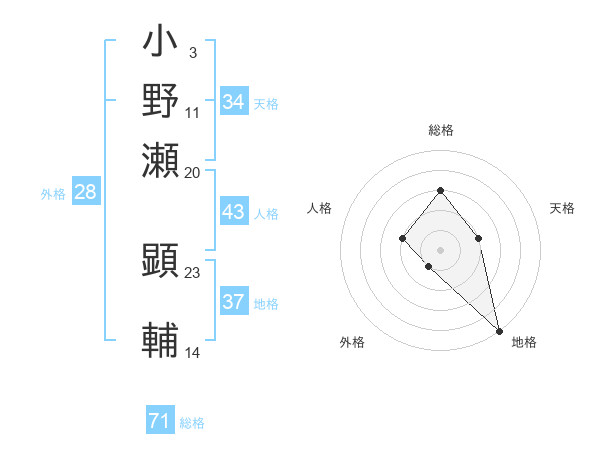 小野瀬 顕輔さんを姓名の画数から五運を鑑定